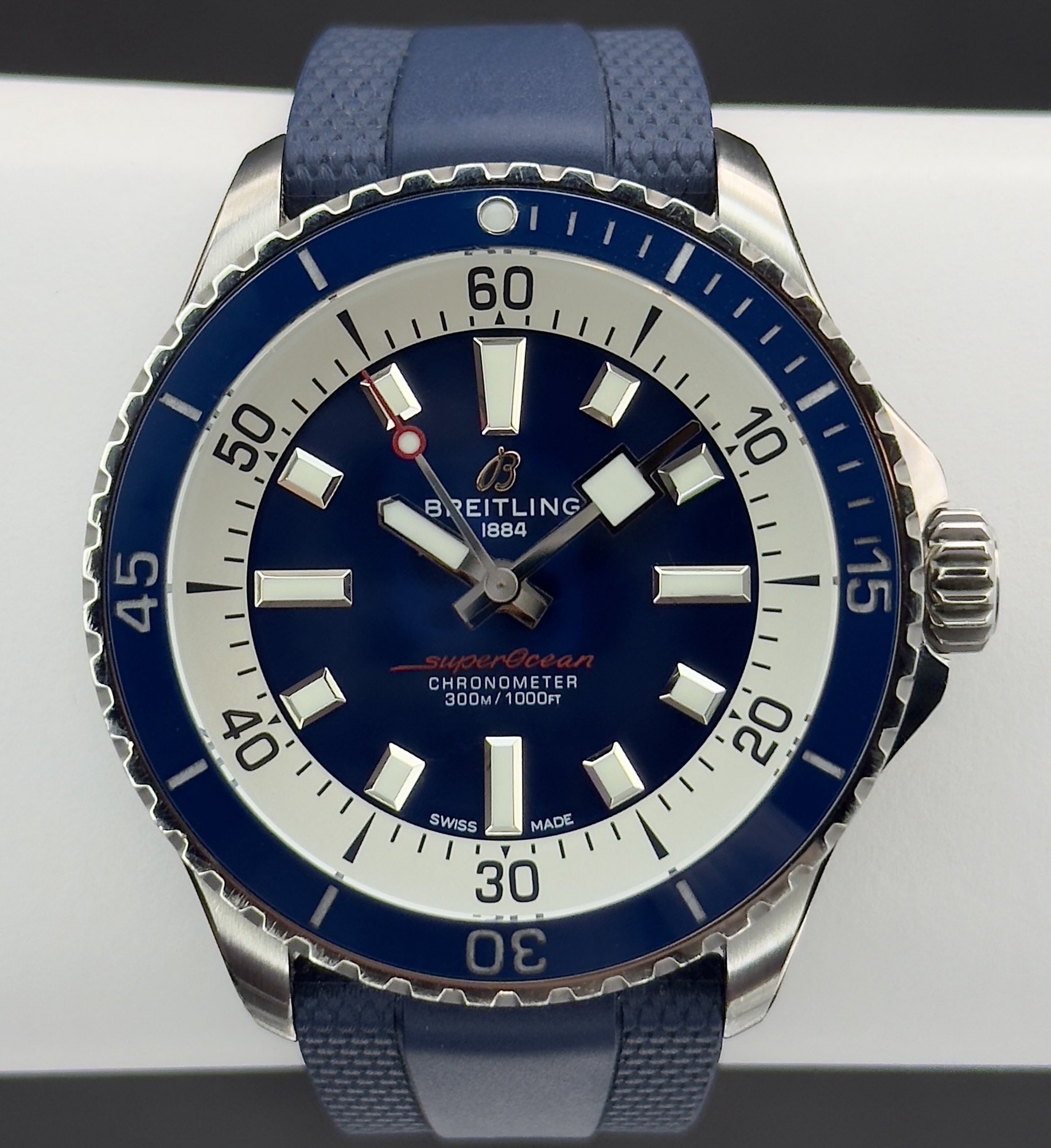 • Model & Reference: Breitling Superocean Automatic 42, Reference A17375E71C1S1 — iconic Swiss diver from the Superocean collection. Includes travel case