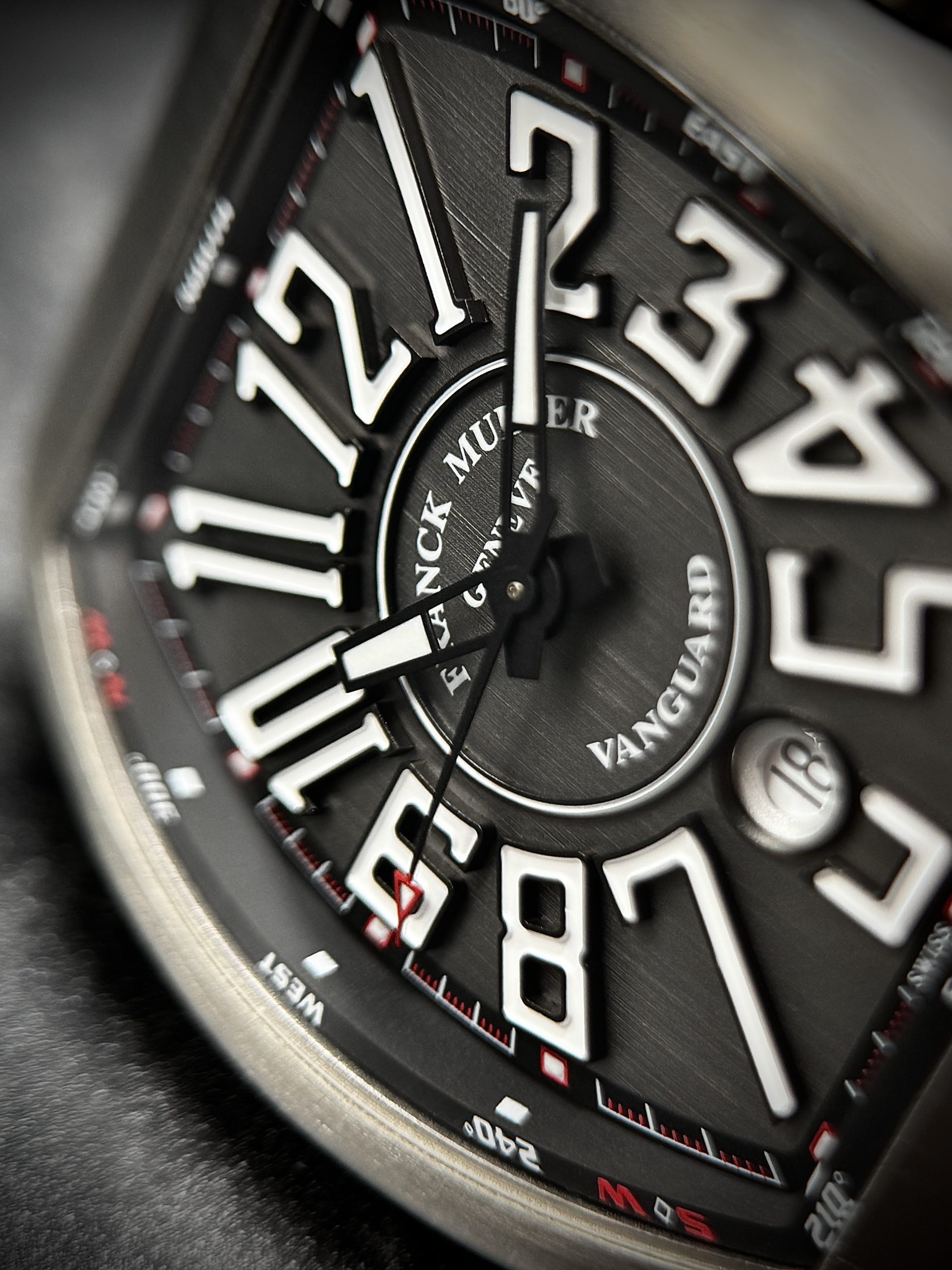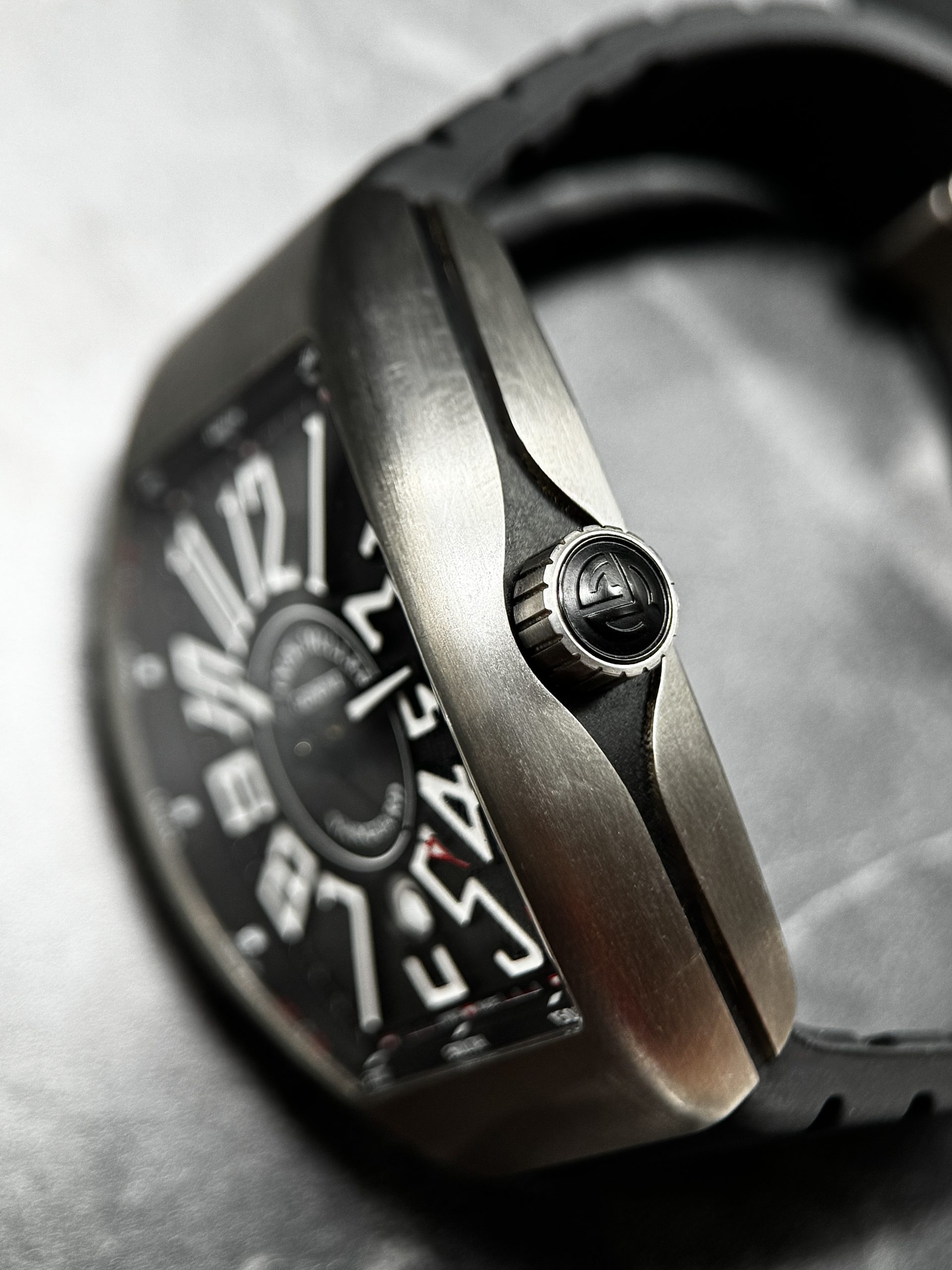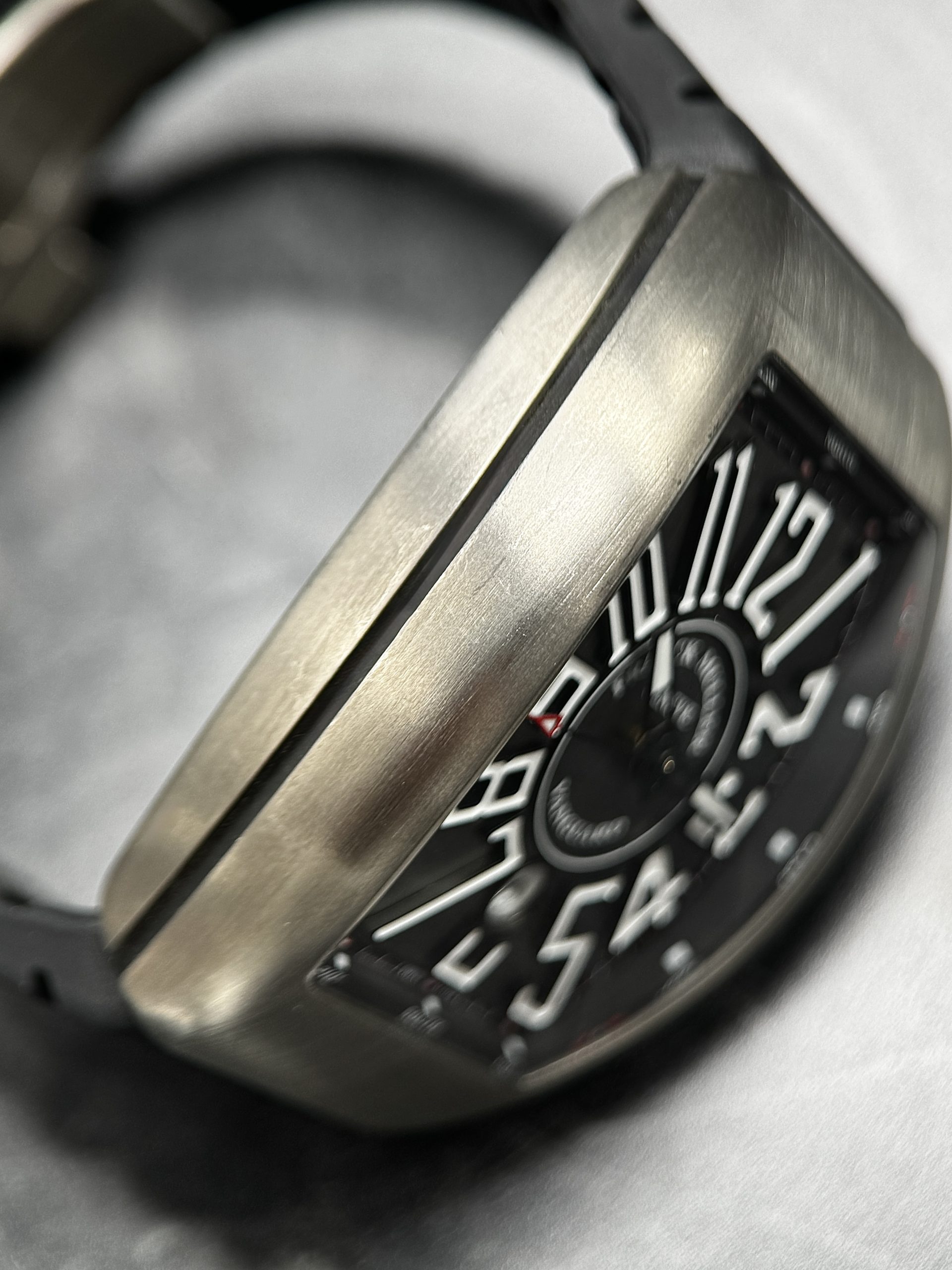 Features: Lightweight titanium construction, bold Vanguard styling, sporty luxury design, comfortable on wrist, strong wrist presence
